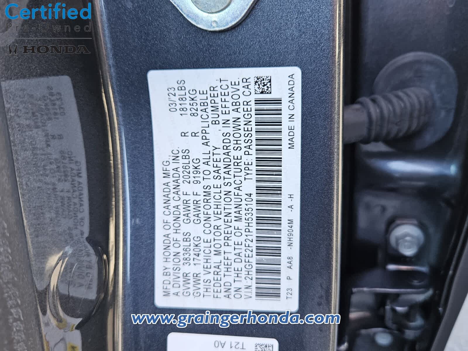 - VIN : 2HGFE2F21PH535104
