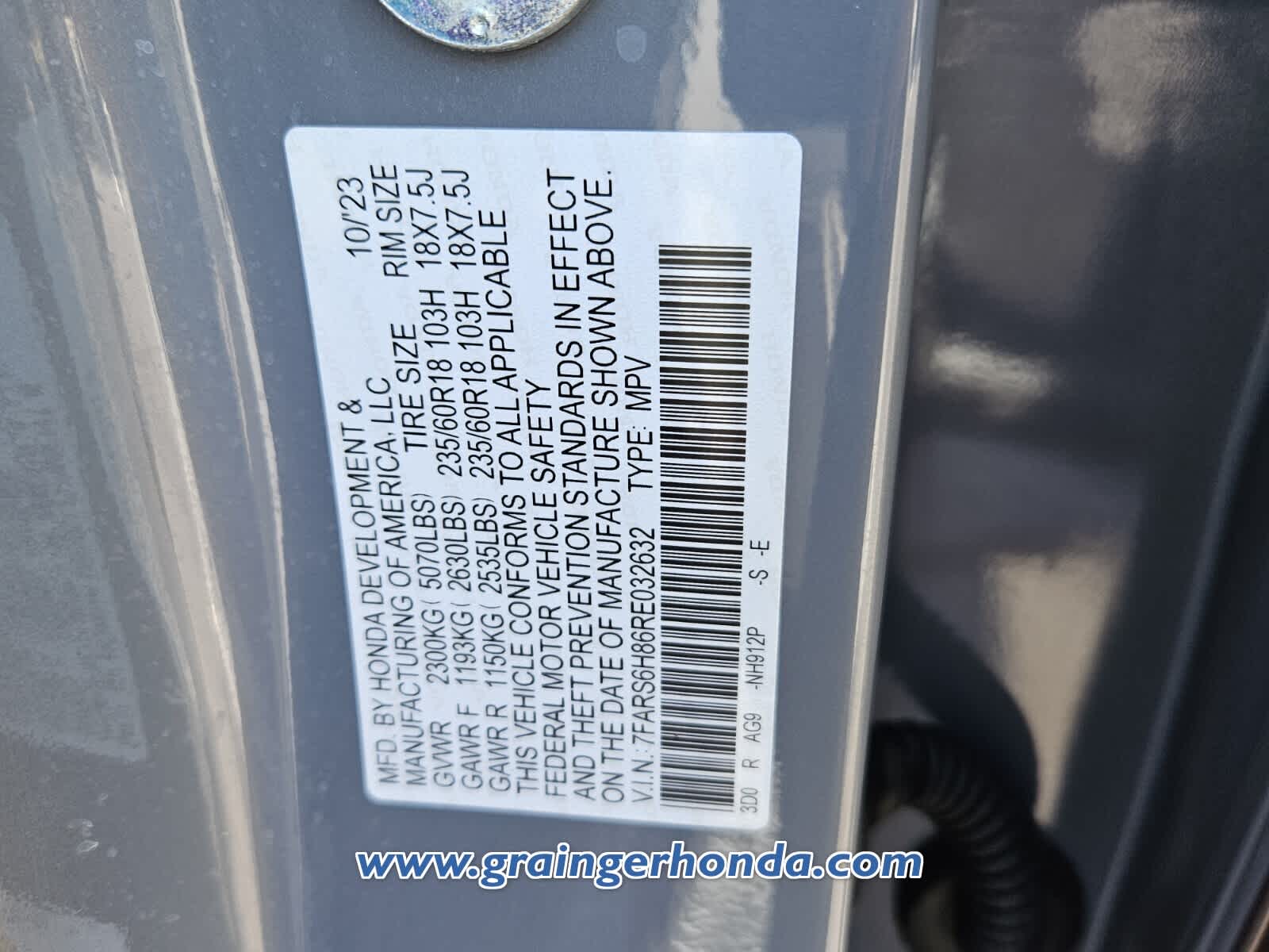 - VIN : 7FARS6H86RE032632