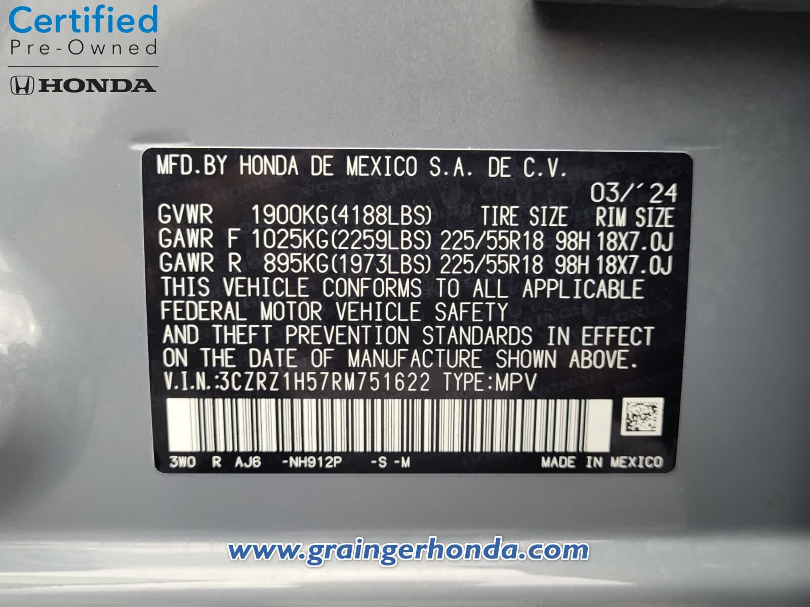 - VIN : 3CZRZ1H57RM751622
