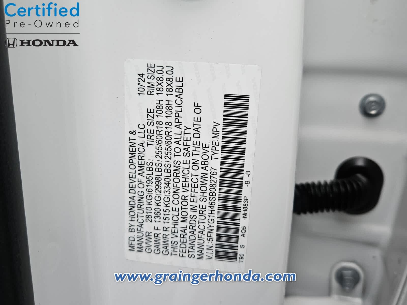 - VIN : 5FNYG1H46SB082767