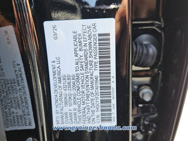 - VIN : 1HGCY1F25TA015940