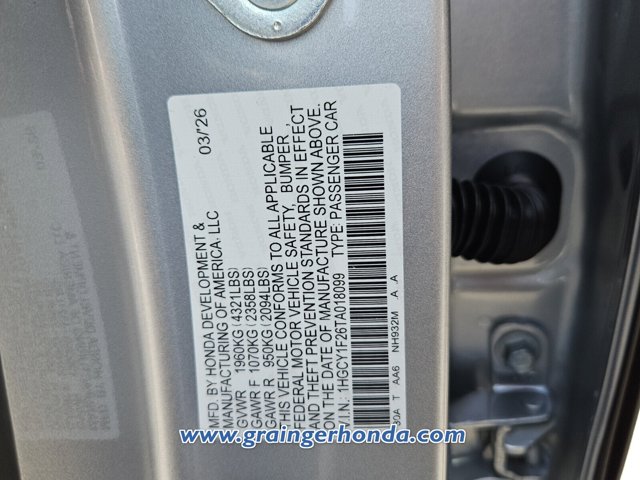 - VIN : 1HGCY1F26TA018099