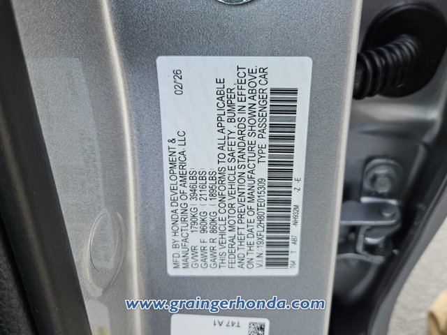 - VIN : 19XFL2H80TE015309