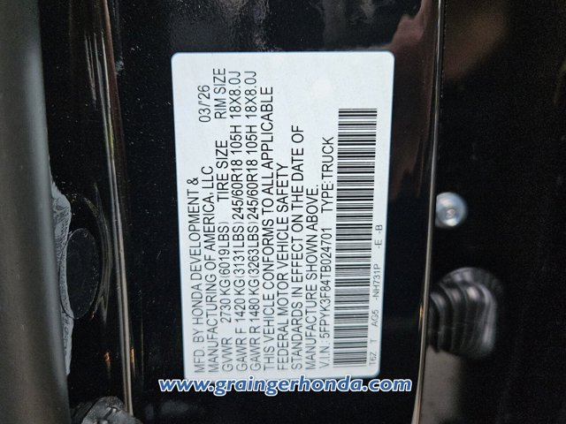 - VIN : 5FPYK3F84TB024701