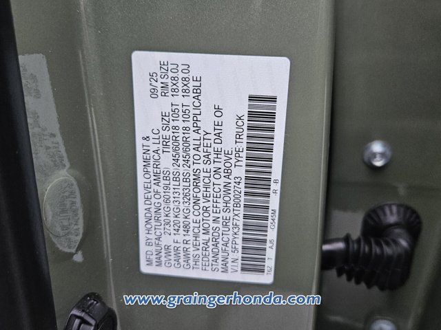 - VIN : 5FPYK3F7XTB002743
