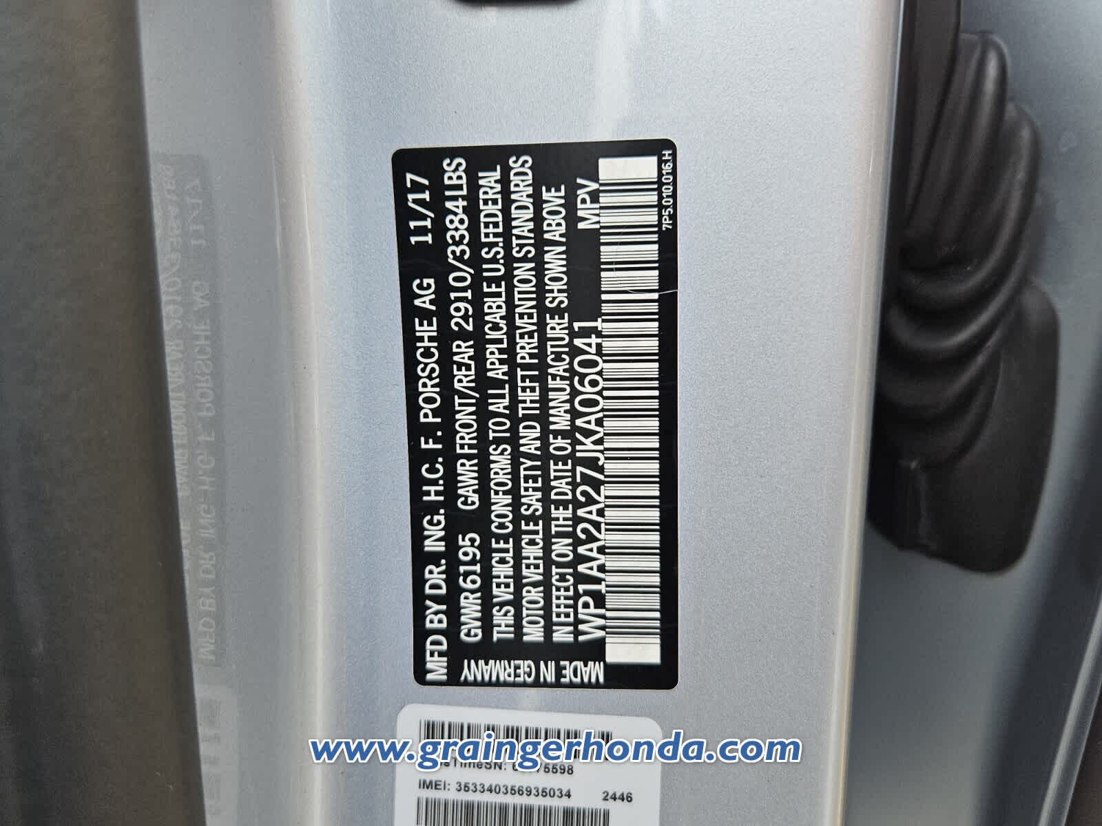 - VIN : WP1AA2A27JKA06041