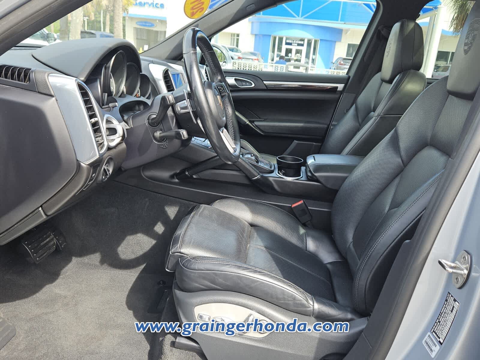 PREMIUM PACKAGE PLUS Electric Sunblinds for Rear Side Windows, 14-Way Power Seats, memory for driver and front passenger seat settings, steering column and exterior mirror positions and settings for lights, wipers, air conditioning, door locking, instrument cluster and PCM on the key remote, Memory Package, Electric Slide & Tilt Glass Sunroof, tinted single-sheet safety glass w/manual sunscreen and comfort closing facility, Front Seat Ventilation, seat squabs and backrests in the front featuring three-stage ventilation and separate controls for left and right, Porsche Entry & Drive, in-car transmitter, interior and exterior antenna system, proximity sensors, locking buttons on exterior door handles and double closing button for the automatic tailgate, Comfort Lighting Package (PP6), WHEELS: 21 CAYENNE SPT CLASSIC IN HIGH-GLOSS BLK alloy wheels, high-gloss polished outer border, wheel centers and full-color Porsche crest, Wheel Arch Extensions, Tires: 21, TRAILER HITCH W/O HITCH BALL, STEERING WHEEL HEATING. Porsche Platinum Edition with Rhodium Silver Metallic exterior and Black interior features a V6 Cylinder Engine with 300 HP at 6300 RPM*.