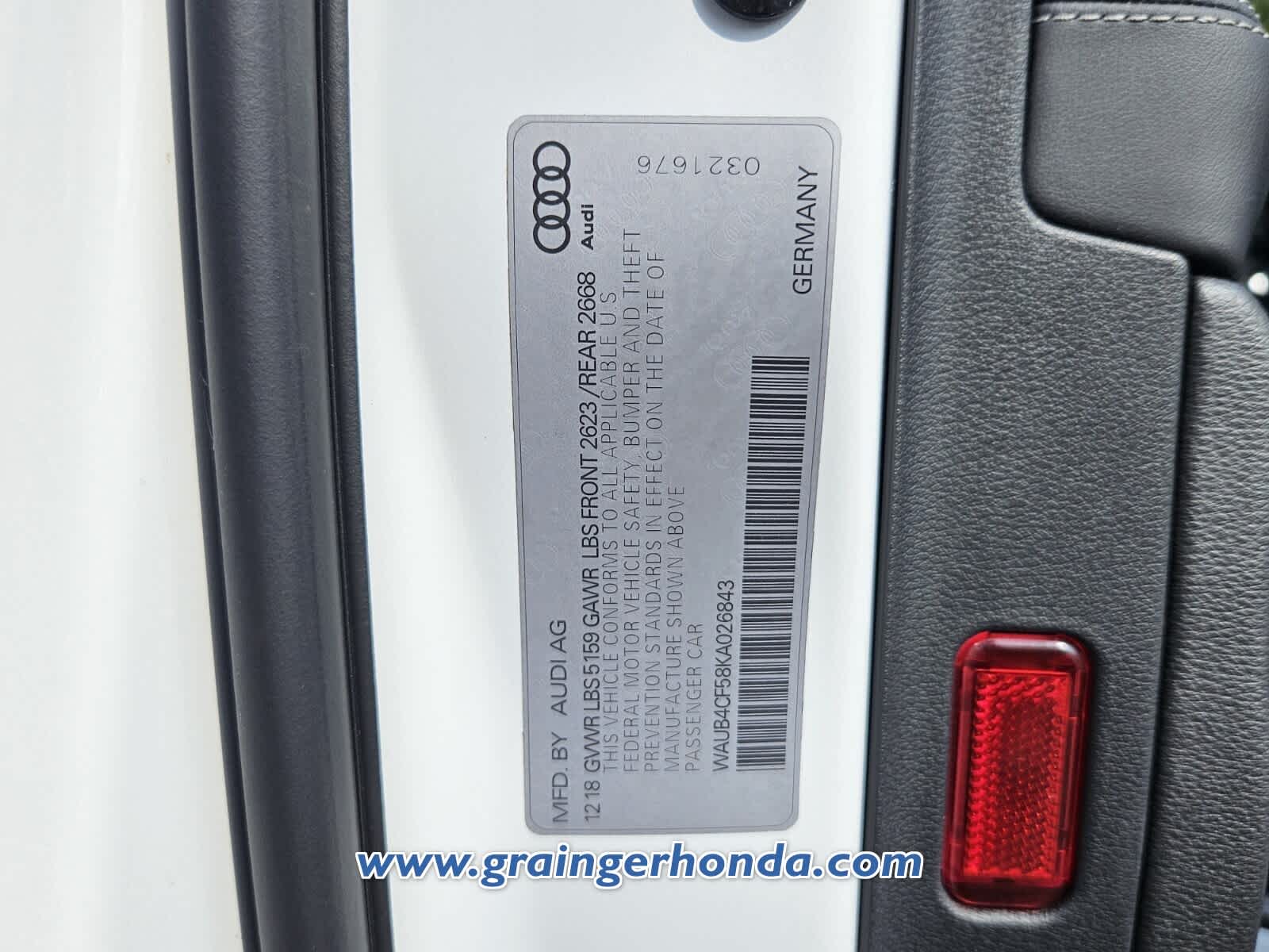 - VIN : WAUB4CF58KA026843
