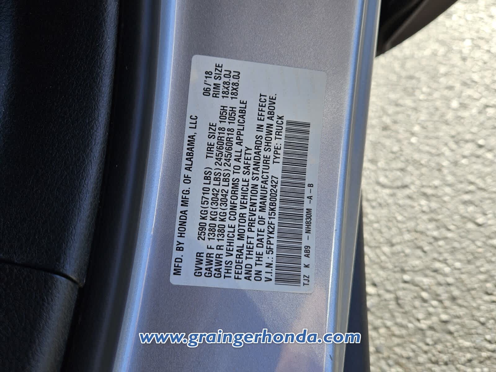 - VIN : 5FPYK2F15KB002427
