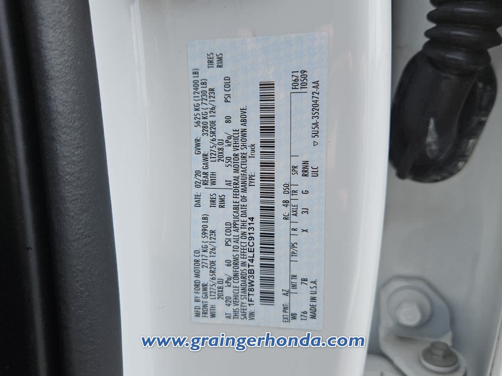 - VIN : 1FT8W3BT4LEC91314