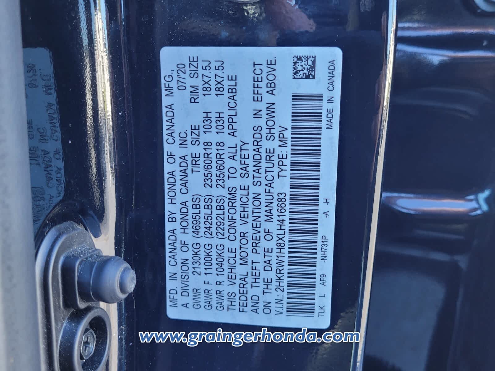 - VIN : 2HKRW1H8XLH416683