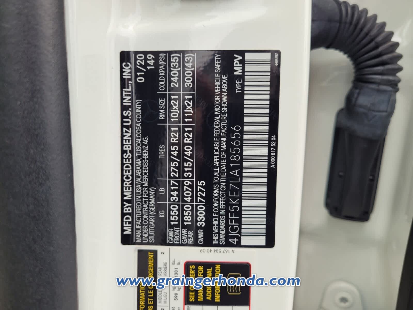 - VIN : 4JGFF5KE7LA185656