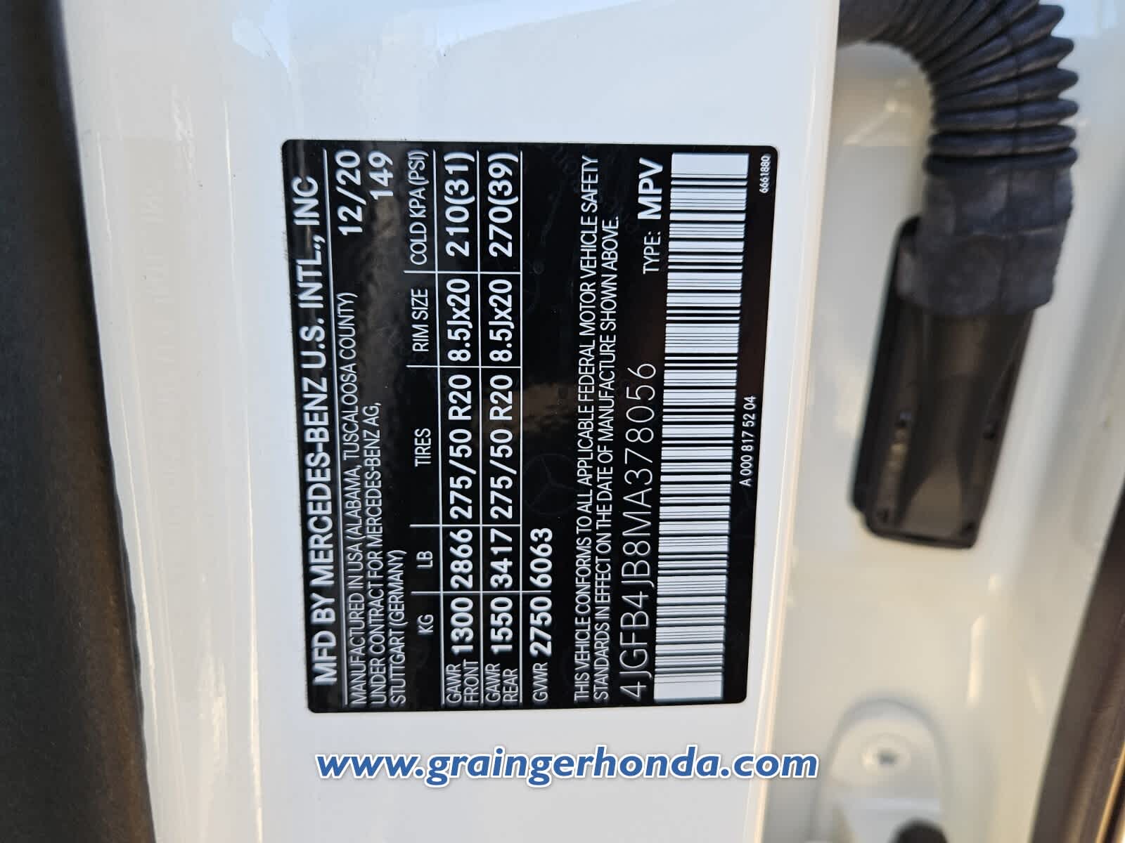 - VIN : 4JGFB4JB8MA378056