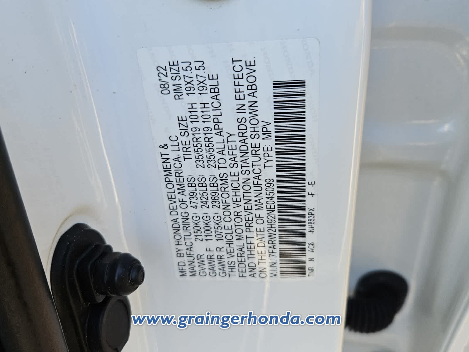 - VIN : 7FARW2H92NE045099