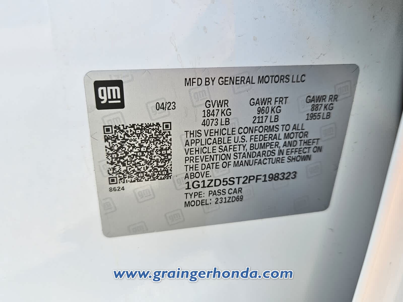 - VIN : 1G1ZD5ST2PF198323