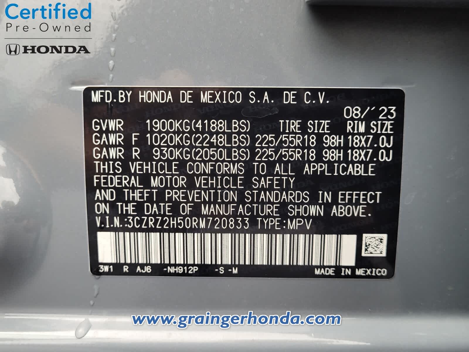 - VIN : 3CZRZ2H50RM720833