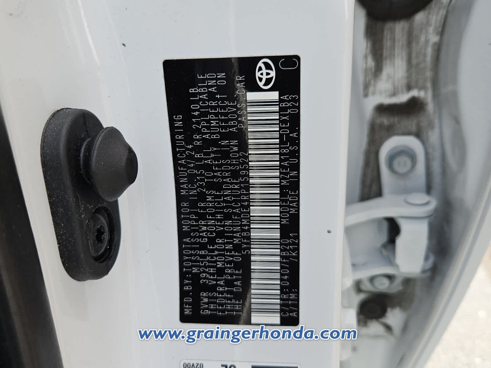 - VIN : 5YFB4MDE4RP159522