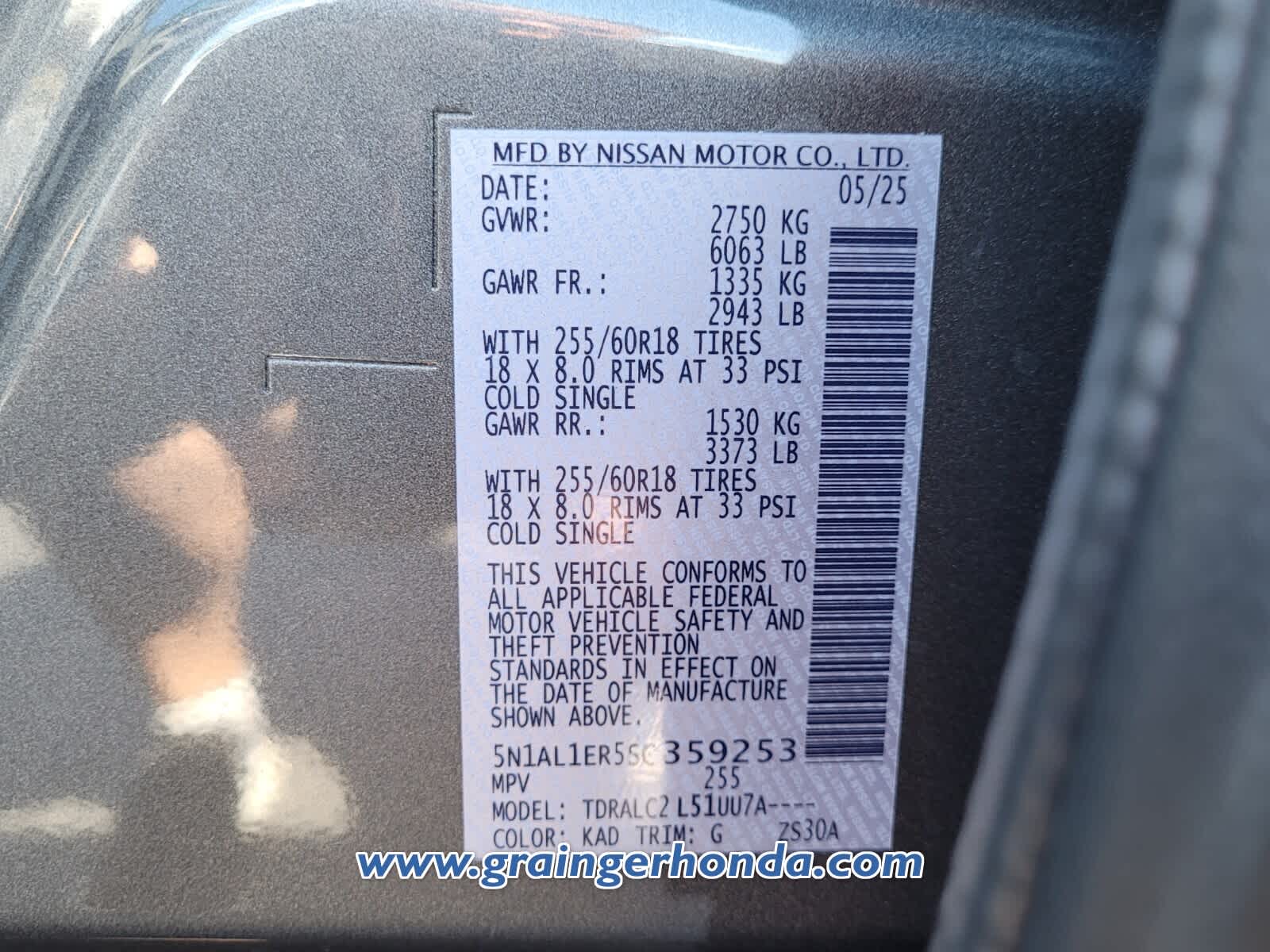 - VIN : 5N1AL1ER5SC359253